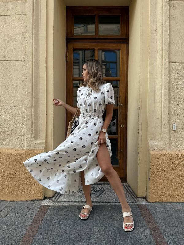 Мод 349 Тканина: котон жатка Размеры: 42-44,46-48,50-52 Сезон: весна/лето Цена:870 грн ИСукня “Летняя легкость” • Длина: миди. • Рукав: короткий, на резинке, с объемом. • Детали: эластичная талия, волан по низу, завязка у горловины. • Материал: легкий и дышащий, идеален для лета. • Стиль: повседневный, романтичный, подойдет и для прогулок, и для свидания. Дополнен аксессуарами - маленькая белая сумочка, сандалии и очки добавляют образу завершенности и элегантного настроения Размерная сетка платья с талией на резинке: • Размер 42–44 • Грудь: 88 см • Рукав: 29 см • Длина: 129 см • Талия: на резинке • Размер 46–48 • Грудь: 96 см • Рукав: 30 см • Длина: 130 см • Талия: на резинке • Размер 50–52 • Грудь: 104 см • Рукав: 31 см • Длина: 131 см • Талия: на резинке имма