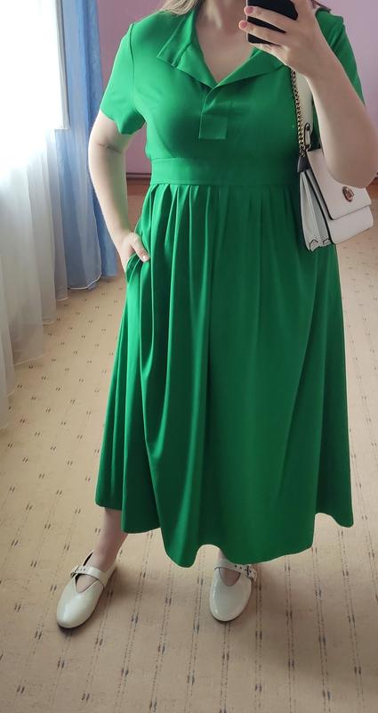 Платье насыщенного зеленого цвета длины миди от украинского бренда Виктор Черничный. Придбала, но так ни разу и не пришлось вдеть, поэтому состояние новое (но стоимость гораздо меньше по сравнению с новой) Талия сзади на завязке. Размер XL, подойдет на EUR 44-46, UK 16-18