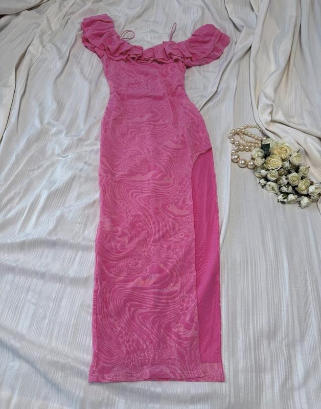 💘Яскрава сукня з глибоким розрізом у розмірі M, на фото натягнута:) на L. Краще орієнтуватися на заміри. У складі 95% поліестер/поліамід та 5% еластану. Тканина доволі еластична. Позаду на змійці. Плечі можна регулювати. Довжина 136 см. Напівобхват грудей 39 см. Напівобхват талії 34 см. Напівобхват бедер 42 см. Довжина розрізу 70 см. Стан чудовий. Ціна 699 грн.