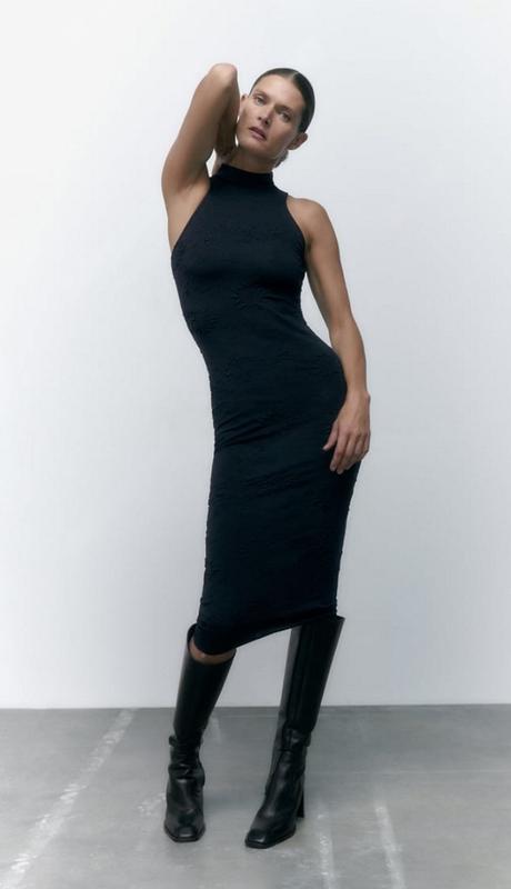 Zara Нова, з офіційного сайту Красива структура тканини, гарно тягнеться Темно-синій колір В наявності М розмір, можна на S параметри 93% поліестер 7% еластан