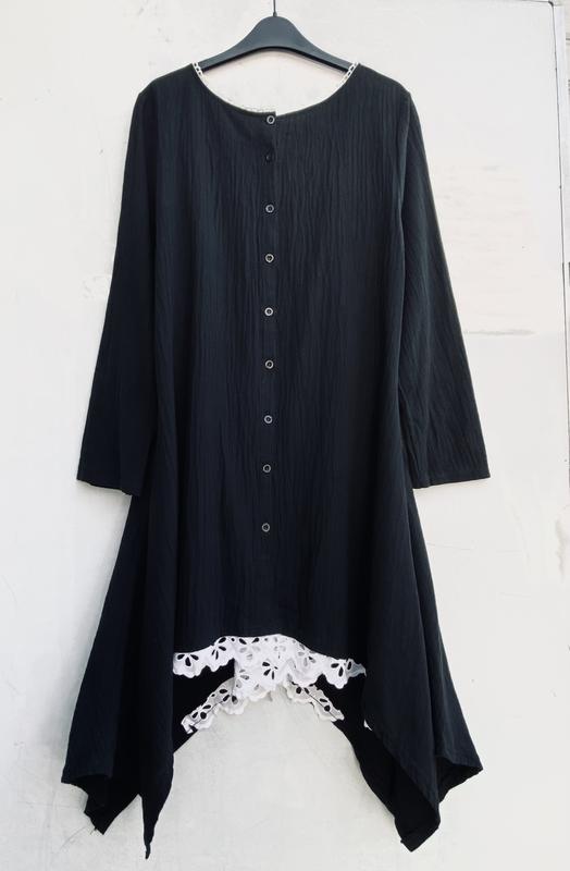 Размер универсальный,свободный крой.»М»,»L”.Длина спереди-90см,плечи-41см,рукав-60см,полуобхват груди-55см,талия-55см,бедра полуобхват-70см,кружево внизу пришивалось вручную