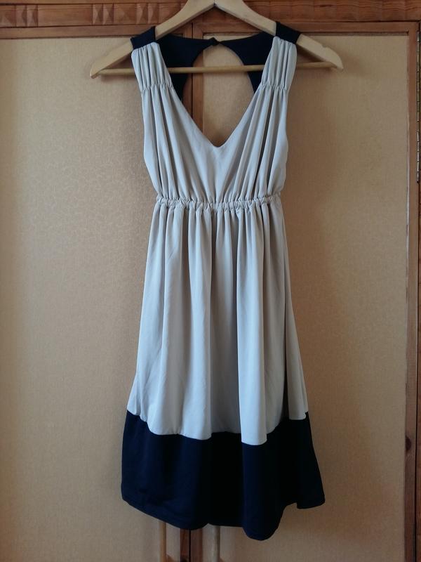 Оригинальное платье из синтетического трикотажа - тонкого, очень мягкого и приятного к телу. Спинка открытая, вверху есть застёжка-пуговица. По талии идёт резинка. Объём груди: 90 см + ещё хорошо тянется Объём талии: 52-100 см Длина: 82 см