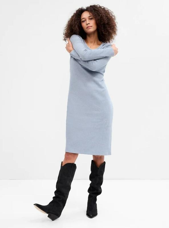 Трикотажное миди платье gap к длинному рукаву, цвет серо-голубой. xs размер