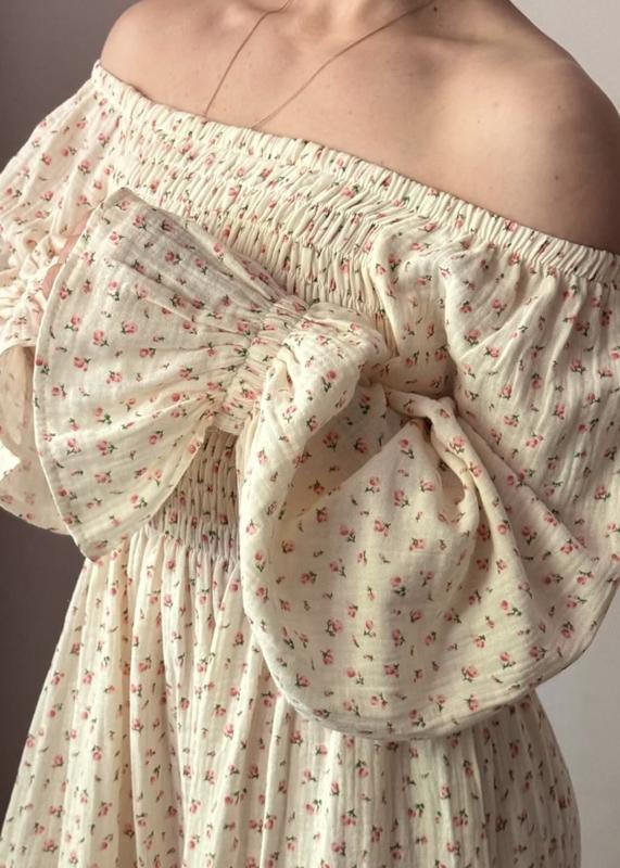 Сукня міді муслін, довга сукня муслінова, сукна з широкими рукавами квітковий принт