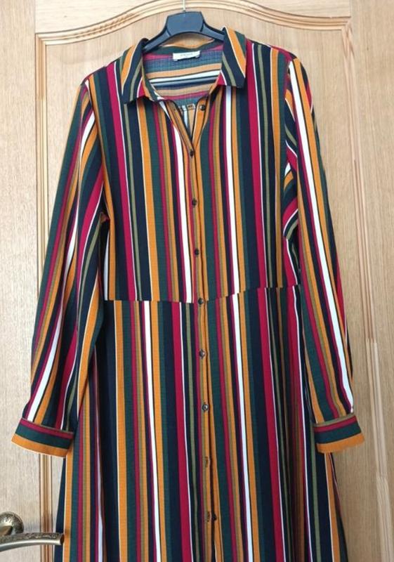 Отличное платье с воротником и длинными рукавами в разноцветную полоску. Весна-лето-осень. Тонкий полиэстр, ощущается, как штапель. Есть петли для пояса, по бокам - разрезы. Состояние новой вещи. ПОГ 60 Пот 56 Поб 60 Длина 118 Плечи 40 Рукав 63 Бицепс 19.5 Смотрите также другие Мои объявления