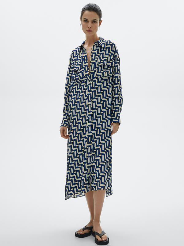 Платье рубашка в принт на пуговицах с разрезами по бокам. Можно носить как кардиган. Есть подкладка. Платье без пояса. Указан размер 40. Замеры ПОГ 52 см, ПОБ 52 см, рукав от ворота 70 см, длина платья 115 см Разрезы по бокам 25 см