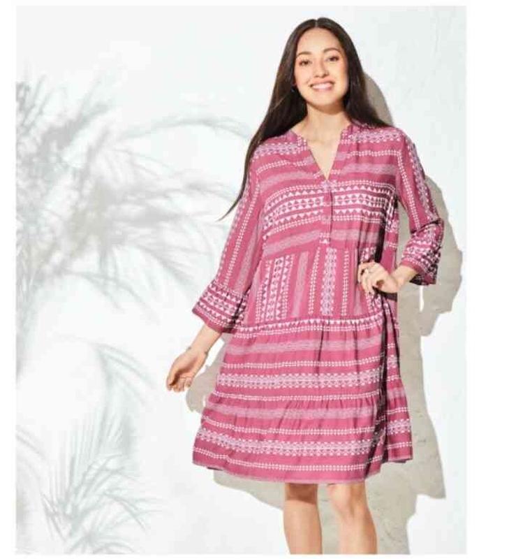 Нежное тоненькое платье с геометрическим рисунком, свободный крой, V-образный вырез, отстрочка в цвет, немецкое качество, интересный крой, впереди маленькие пуговицы. Замеры, евро р-р S: Плечи - 40- см ПОГ- 54 см ПОТ- 52 см ПОБ- 62 см Длина рукава - 32/48 (всредние/внешние) Длина изделия - 94 см Загляните в магазин и обязательно сможете найти себе интересные вещи!