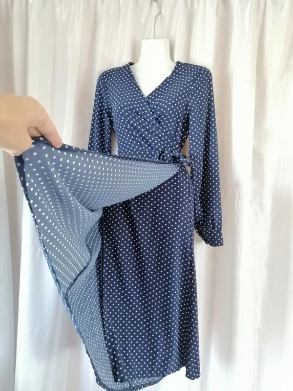 платье на запах в горох длина чуть ниже колена легка струменева тканина суперсофт размер подойдет на S-M затягивается поясочком по вашей фигуре плечи от шва до шва 34 см полуобхват груди 43 см тянется на 50 см полуобхват бедер 55 см Длина платья 106 см длина рукава 61 см Допускаю погрешность измерения плюс-минус 1 см Безпечна оплата з оглядом товару на пошті Безопасной оплатой присылаю по почте Mеэst Express