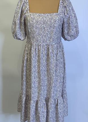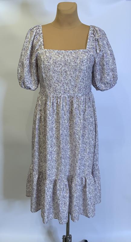 Красива сукня в квітковий принт,вільний фасон з рюшею,квадратний виріз на грудях і пишний рукав на резинці,стан новий,без дефектів,вказаний розмір 12,підійде орієнтовано на 46/48р. 100% поліестр,на дотик приємний,не колючий,не просвічує. Виміри: - Довжина від плеча 110см(до шва 36 см) - ПОГ 42 см+тягнеться(по спині гумка) - ПОТ 38 см+тягнеться - ПОБ 70 см - рукав 31 см,ширина по біцепсу 29 см Арт 3828.2