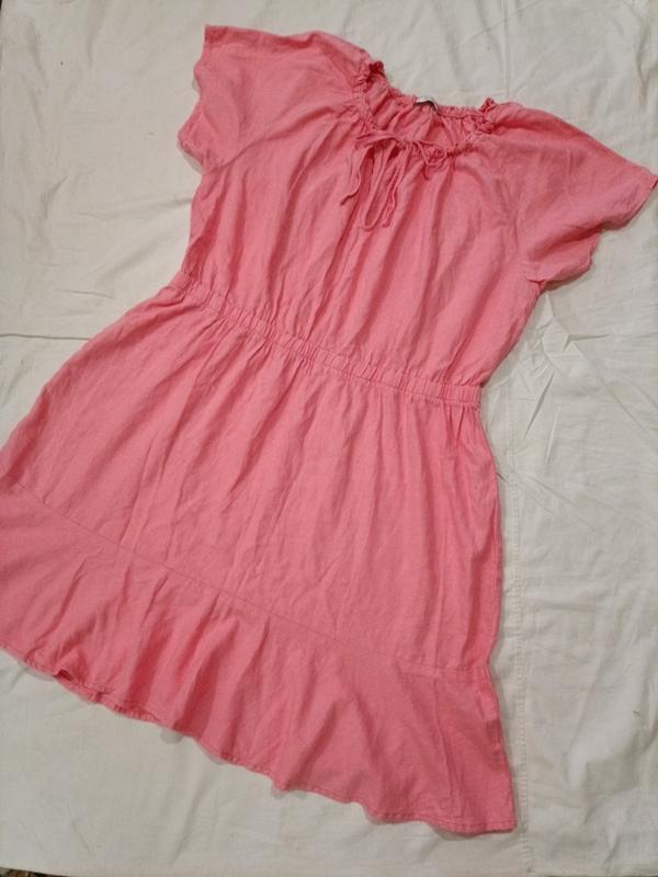 🌺Ног- 63(126) см 🌺 талия на резиноке 🌺 стегна 142 см 🌺 длина по спинке 95, от плеча 100 см. 🌺 Ганебное платье лен / вискоза батал состояние новой вещи.