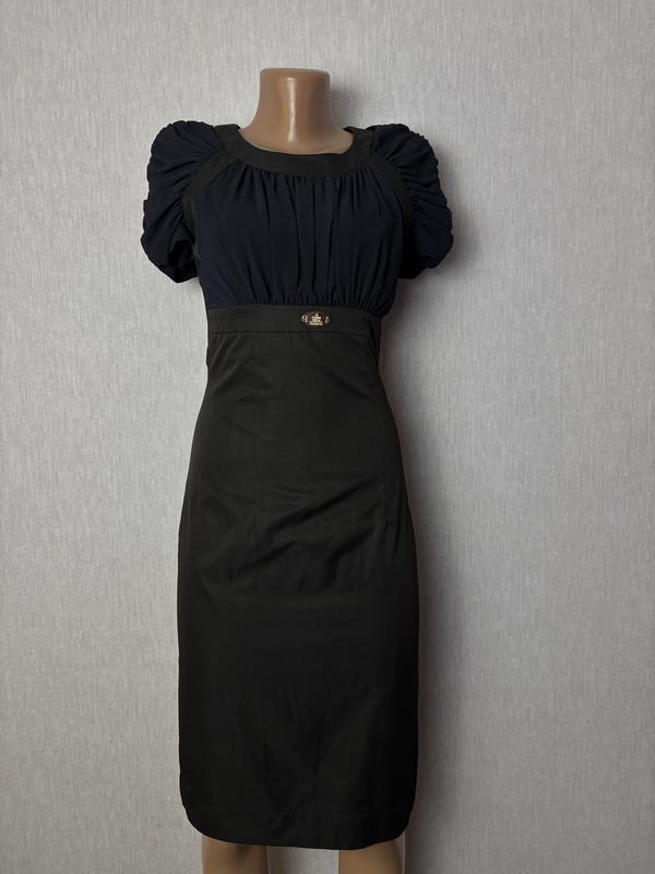 Стильна оригінальна сукня Fendi чорного з синім кольору, довжина міді. Розмір зазначено 38, але маломірить — орієнтуйтесь на заміри нижче. 🔹 Оригінал 🔹 Приталений крій 🔹 Тканина трохи тягнеться 🔹 Змійка на спинці 🔹 Актуальний виріз + розріз 🔹 Довжина — 100 см 🔹 ПОГ — 42 см (тягнеться до 45 см) 🔹 ПОТ — 35 см 🔹 ПОБ — 45 см . Ідеально для події, офісу або вечора.