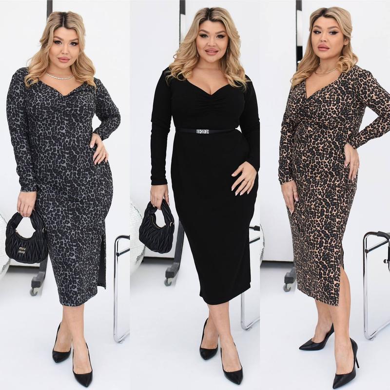 Стильное платье тренд 2024-2025рока🔝🔝🔝 #1421 ангел Цена 1040 грн Размеры 48-52,54-58,60-64 Цвета: коричневый и серый Лео, Черный однотон Ткань:дорогая Турецкая🇹🇷 3-х нить петля теплая (идет без начеса), тянется до 5 см Тканина Не кашлатиться❌, приятная к телу, и выглядит очень дорого и стильно😍 Описание: есть разрез сбоку 32 см, и имеет хорошее декольте 👍 ремень модели ❗️ Замеры👉 48-52 54-58. 60-64 Ог. 112. 122 132. От 100. 110. 120. Об 114 124 134 Дов. 118 122. 122. Д.рук. 60. 62 64 До 5 см плюс тянется!!️ На модели 48-52, рост 165 см Параметри Ог 108 от 80 об 109