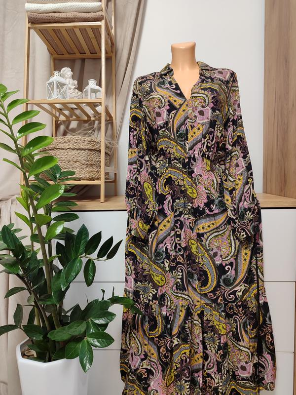 Чудовий принт пейслі в гармонійній гамі розбавляє глибокий чорний! Зручний фасон,доповнена пояском, бірка з складником зрізана, впевнена, що це віскоза. Довжина 129, ПОГ 50, ПТ 38+ резинка( до 50), ПОБ 54. Вказано розмір S, цілком підійде на М і Л. Прошу підписуватися, є багато гарних речей і часте оновлення товару!#12#