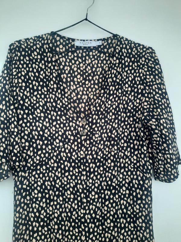 Вискозное платье миди на короткий рукав, спереди распорка, v-образный вырез.Полномерное М, хотя указано размер S
