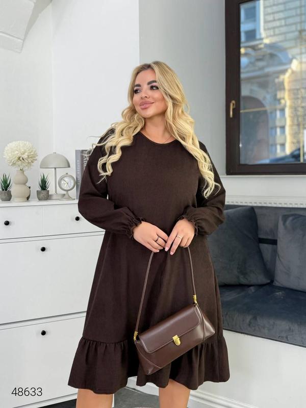❗️❗️❗️Перед оформлением заказ уточняйте, пожалуйста, наличие вашего размера. Срок отправки от 2 до 7 дней Новой или Укр-почтой. Безпечна оплата✅ Вдалих покупок❤️ Платье вельветовое с воланом. Свободного кроя, снизу небольшой рюш, рукав приспущен. Тканина: вельвет. Цвета: коричневый, синий, бежевый, оливковый Размеры: 48-50, 52-54, 56-58, 60-62 Замеры: 48-50: ОГ – 116 см, ОТ – 118 см, ОБ – 134 см, длина рукава от горловины – 70 см, длина по спинке – 103 см. 52-54: ОГ – 124 см, ОТ – 128 см, ОБ – 140 см, длина рукава от горловины – 70 см, длина по спинке – 103 см. 56-58: ОГ – 130 см, ОТ – 136 см, ОБ – 148 см, длина рукава от горловины – 71 см, длина по спинке – 104 см. 60-62: ОГ – 138 см, ОТ – 142 см, ОБ – 150 см, длина рукава от горловины – 71 см, длина по спинке – 104 см.