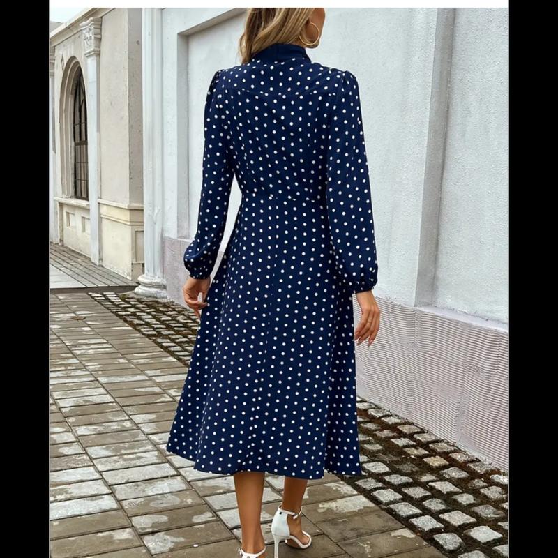Платье миди в горох с золотистыми пуговицами.Стан новой вещи. Длина 117см Плечи 39см Длина рукава от плеча 50см ПОГ 45см ПОТ 38см, на боку молния Смотрите другие мои объявления э много интересного, делайте подписи.