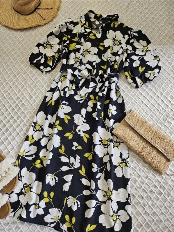 Красивое легкое миди платье рубашка. 100% выскоза! Р. 10-12/ М-L Длина 118см Грудь 48см Талия45см Бедра 51см