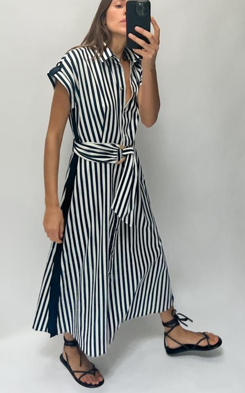 Стильное льняное миди платье рубашка в полоску. 55% лён! Из текущей коллекции. Р. М Длина 122см Грудь 50см + Талия 43см Бедра 61см