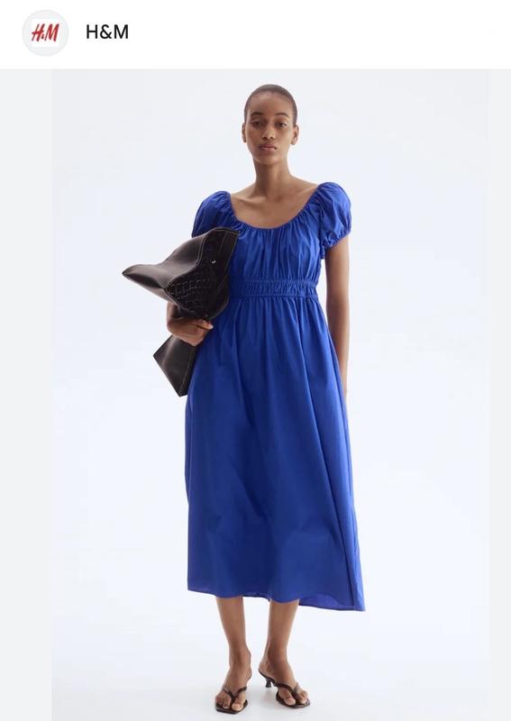 Сукня міді з обʼємними рукавами, в талії - резинка, тканина: 100% котон Розмір S Довжина 128 см ПОГ 49 см ПОТ 35 см + тягнеться Нова, з бирками