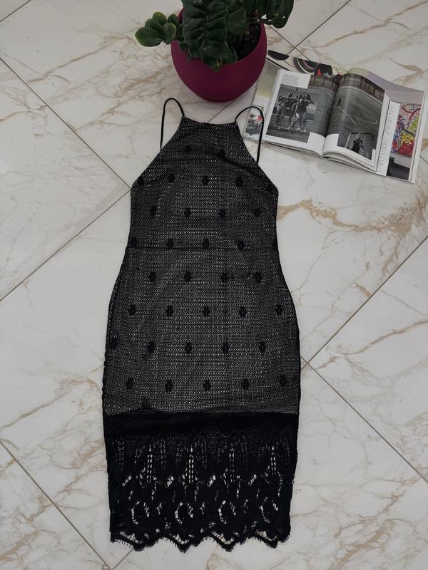 Жіноча вишукана чорна мереживна сукня з бежевим підкладом у розмірі L. Стан - ідеальний. Склад: 100% поліестер.