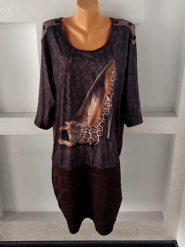 Рисунок на платье- туфелька на каблуке. Длина 100 см, ПОГ 60 см (летучая мышка), ПОТ 50 см, ПОБ 50 см, рукав 3/4- 35 см. Возвращение и торга отсутствуют. ОПЛАТА ТОЛЬКО НА КАРТА ПРИНИМАНИЕ 100% (безопасной оплаты и предоплаты нет!!). Открытка укрошта (+5 грн за упаковку), новая почта и Meest.