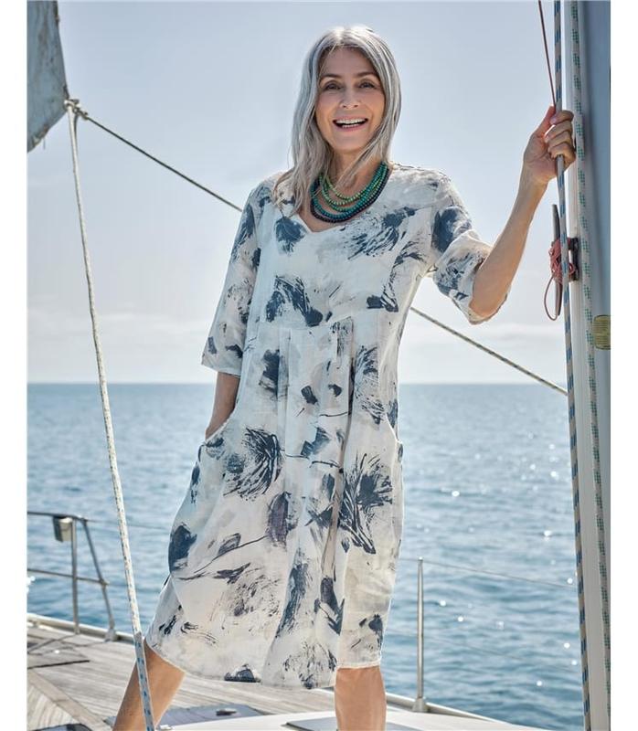 Белое, льняное платье свободного кроя. 100% лён! Р. 10-12 Длина 100см Грудь 52см Талия 53см Бедра 62см