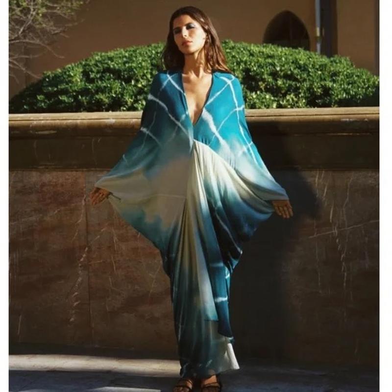 Універсальна сукня з V-подібним вирізом та довгими рукавами (кажан). Асиметричний поділ. Можна носити на дві сторони і доповнювати аксесуарами. Неймовірно виглядає на стрункій фігурі та засмаглій шкірі! РОЗМІР: XS/S ЗАМІРИ: Довжина 139 пог не обмежений кроєм і відповідає розміру, рукав від коміра 75 СКЛАД: віскоза СТАН: ідеальний ➖➖➖➖➖➖➖➖➖ Речі в наявності👗🧥👠 Фото на собі не роблю. 🙅♀️ Відправка: НП, Укрпошта📦 Всю необхідну інформацію надам😊 Перегляньте інші мої оголошення та об’єднайте їх із спеціальною знижкою.🫶