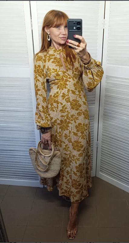 Нова з біркою, з офіційного сайту Zara Іспанія. натуральна тканина 100 %, є підкладка, тканина плотна не світить. Обʼємні рукавички-фонарики, насичені кольори, дуже ефектно виглядає, розмір по бірці с. Довжина 138, рукав від шиї 86, талія 36, груди 48-49, бедра до 56.