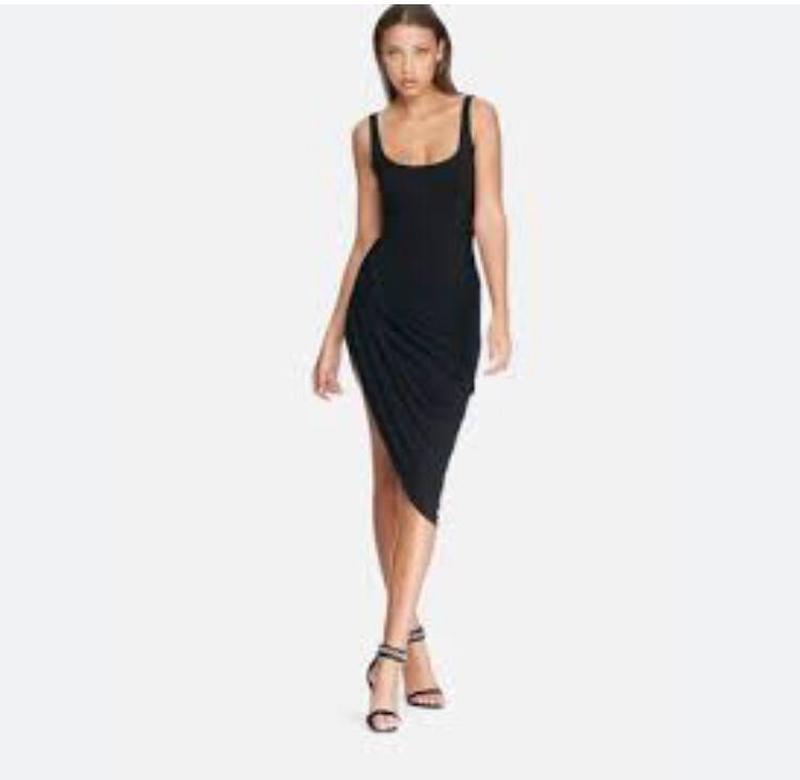 Платье миди темно-серого цвета с драпировкой на юбке сбоку. Тканина масло. Бренд Missguided Размер не указан, подходит на S-M, M
