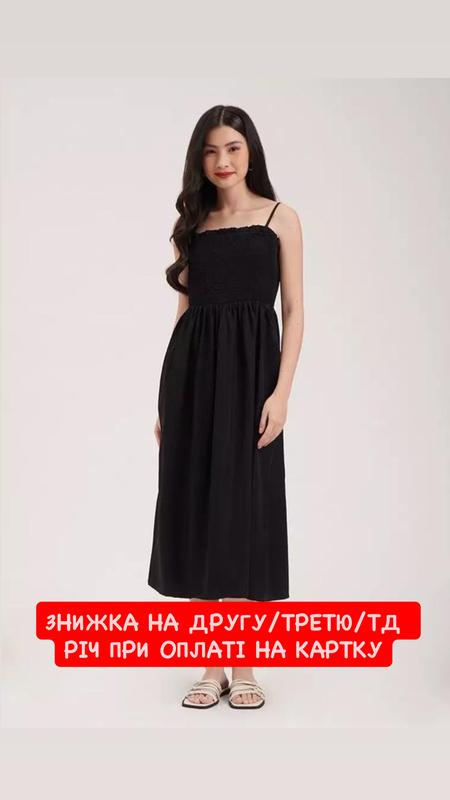 Чорна міді сукня довге плаття резинка на грудях на тонких бретелях універсальний розмір ві...