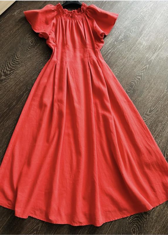 Сукня ZARA коралово-червоного кольору, приталенна , дуже гарно лягає по груді , підкреслює талію , розкльошона , рукавчики вільні , склад -льон-бавовна , на розмір S-M. Стан нової . Ціна 350 грн