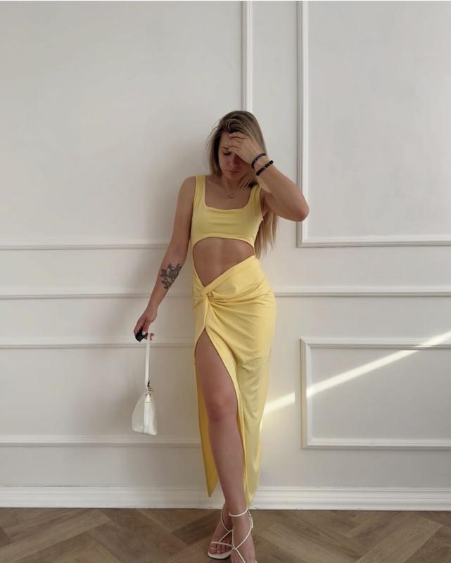 Дуже класна та оригінальна сукня майже в пол Розмір М (42-44) Гарно тягнеться, стрейчева, виглядає оригінально та незвично, стан ідеальний, але є забруднення трохи понизу, треба буде простірнути Всі бірки на фото, фото на собі не роблю Одягнено на зріст 166 см