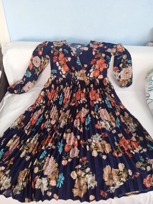 полуобъем груди 46 полуобъем талии 40 длина рукава 62 см длина платья 1,15 сезон лето осень-весна цветочный принт сине-темное новое