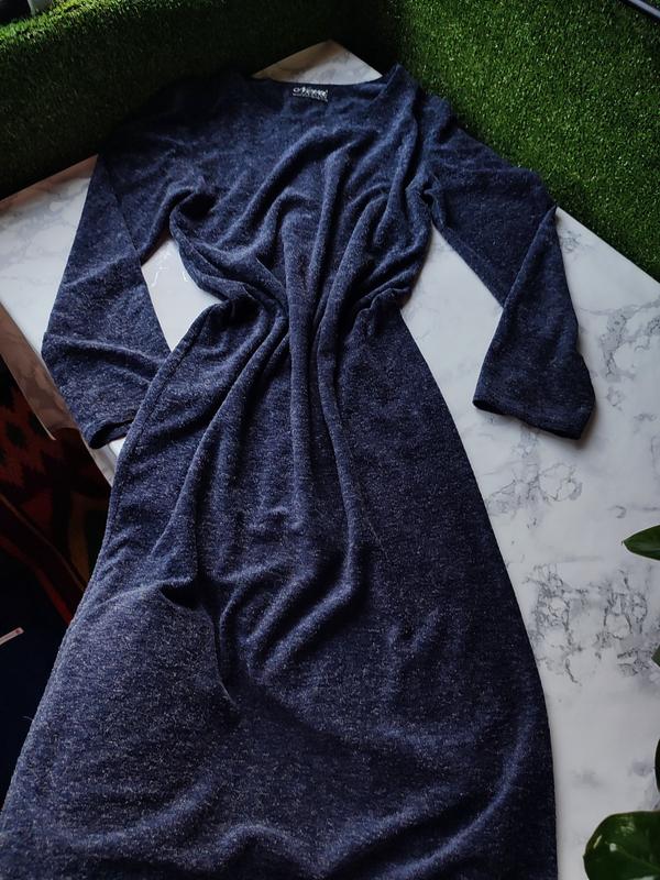 платье миди на длинный рукав темно синего цвета, размер с-м добавляю замеры : длина 105см, по груди 42см, рукава 58см, талия 37см, сзади разрез 23см