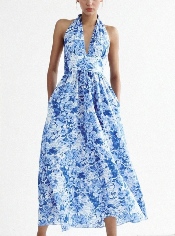 Новое хлопковое платье миди zara с цветочным принтом халтер сарафан с открытой спиной