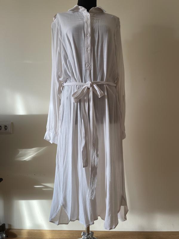 Жіноча сукня міді молочного кольору з віскози. Розмір L. Краще підійде на M. Плечі 41 см, ПОГ 59 см, ПОТ 59 см, ПОС 66 см, довжина 121 см, рукав 65 см, ширина рукава 22 см. Стан ідеальний, без дефектів.
