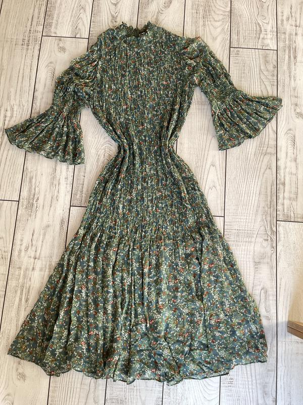 Розмір Xl Майже до коліна на резинці - тягнеться і плечі також Плечі в спокої 40см Рукав 53см Довжина133см Під руками груди в спокої і вниз 46см тягнеться Тканина схожа на шифон полупрозора