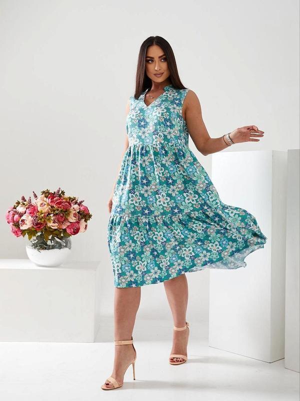 ❤️Платье без рукавов с воланами❤️ 💦 Код: 1919 💦 Размеры: 36, 38, 40, 42 44, 46, 48, 50 - наш 💦 Ткань: коттон-джинс 💦 Цвета: мята, джинс Красивейший лёгкий летний сарафан с богатыми рацветками! Ткань высокого качества, приятная к телу!