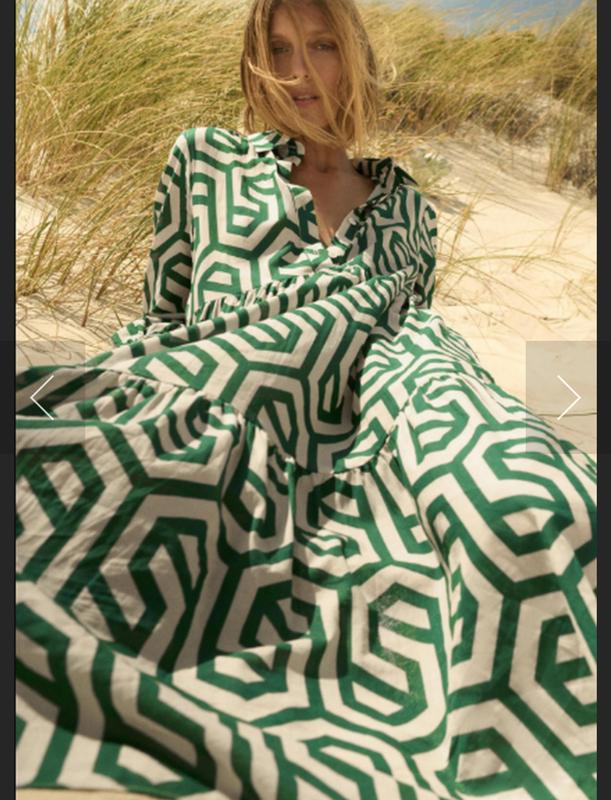 Замечательное платье на лето , состояние нового, качественный хлопок. Длина от плеча 125см.+- П/о груди подмышки 56см.,+ - не тянется П/о подреза талии 54см.+- К низу расширяется. П/о бедра 78см.+-
