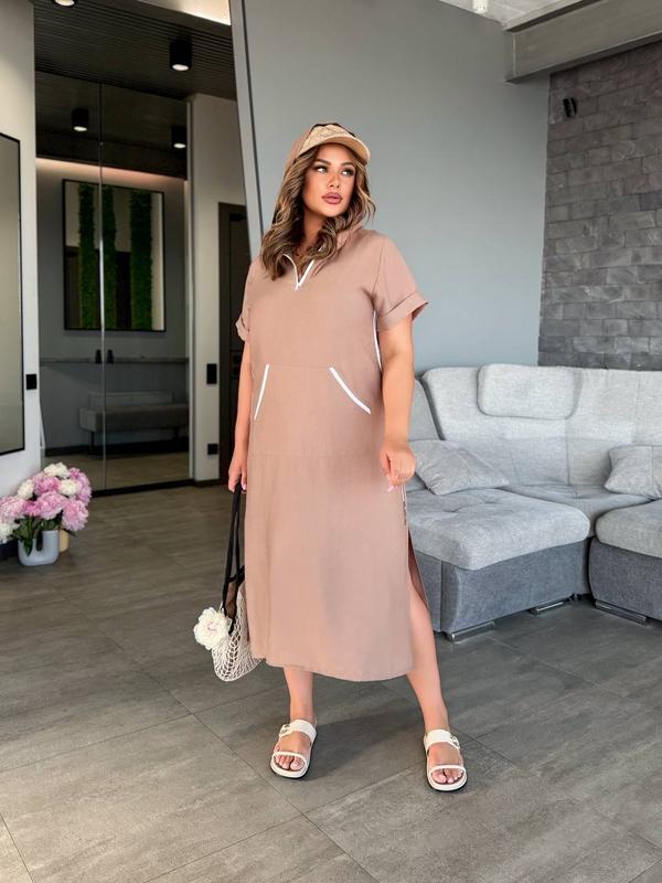 Сукня | Артикул: 5444 Кольори: Графіт, Бежевий, Зелений ✨ Розміри: 1 (48-50) – ОГ 108, ОС 122 2 (52-54) – ОГ 116, ОС 130 3 (56-58) – ОГ 122, ОС 140 Кольори: Синій, м’ята 1 (48-50) – ОГ 108, ОС 122 👗 Модель: ▫️Тканина: лен структурований ▫️ Довжина по спинці — 115см ▫️ Рукав — 24 см 💫 Легка, жіночна, з акцентом на зручність та стиль — ідеальна для спекотних днів!