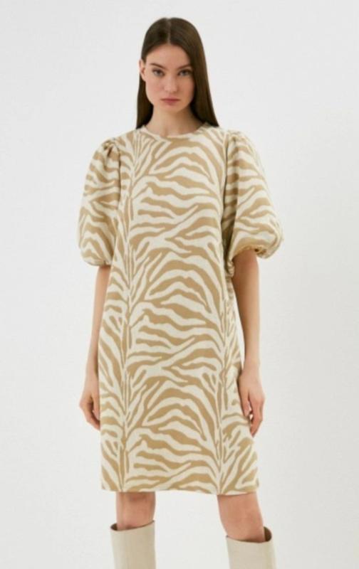 Покупка до 200 грн с оплатой на карту!!️Платье в идеальном состоянии размер С. Бело-бежевая палитра, длина миди. форма трапеции. Пог 48 Пот 50 Поб 53 Длина 96 Рукав 34 Плечи 31.