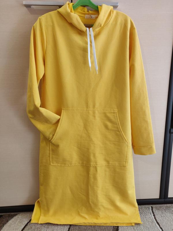 Платье-худи с капюшоном, в отличном состоянии, одевалась несколько раз, мне не пришла длина. Размер М (может подойти и на Л). Длина - 103см, ширина - 53-55см, рукав - 60см, плечи - 40см.