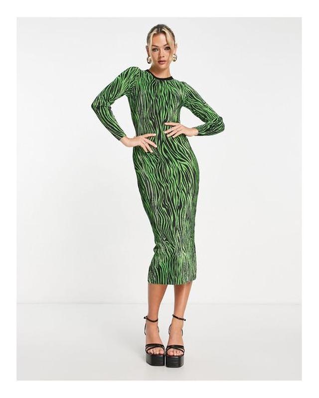 Яскрава сукня river island в зелено-чорну зебру, міді, стан ідеальний
