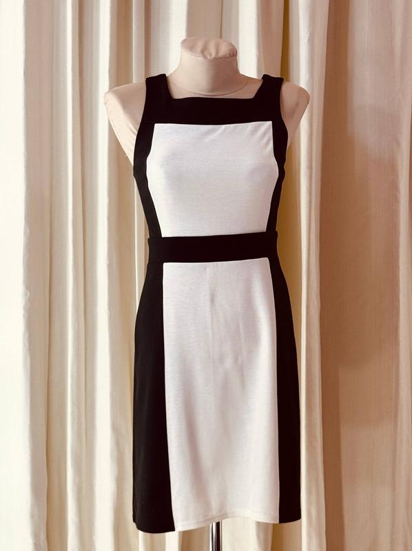 Сукня-футляр чорно-білого кольору трикотажна NEW LOOK🛍️❤️🔥 Розмір - UK 6-8/ EUR 34-36/ USA 2-4/ XS-S / 40-42. Склад : 100% поліестер. Виробник Китай. Сукня приталеного крою, відрізна по талії з короткою змійкою спини. Чорна з білими вставками. Вгорі з обляганнням, від талії вниз з легким розширенням. Додаткові заміри: повна довжина 90 см, довжина від лінії плеча до талії 40 см, довжина від талії вниз 50 см, ширина плечей 30 см, напівобхват грудей 38 см (повний обхват 76 см) і тягнеться до 90 см, напівобхват талії 34 см (повний обхват 68 см) і тягнеться до 75 см, напівобхват стегон 46 см (повний обхват 92 см) і тягнеться до 106 см.