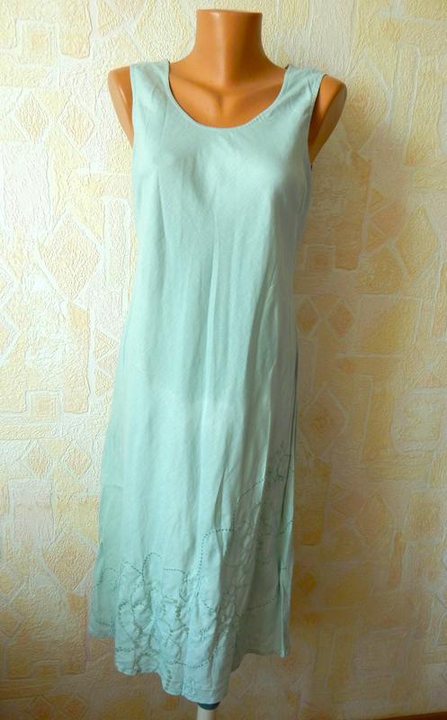 ПОГ до 52см, талия до 48см, длина 111см, низ 67см. Скроено по косой, тянется, чехол. Светлая бирюза.