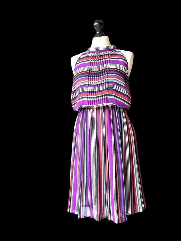 Шикарное платье плиссе на подкладке в яркие радужные полоски, красиво садится