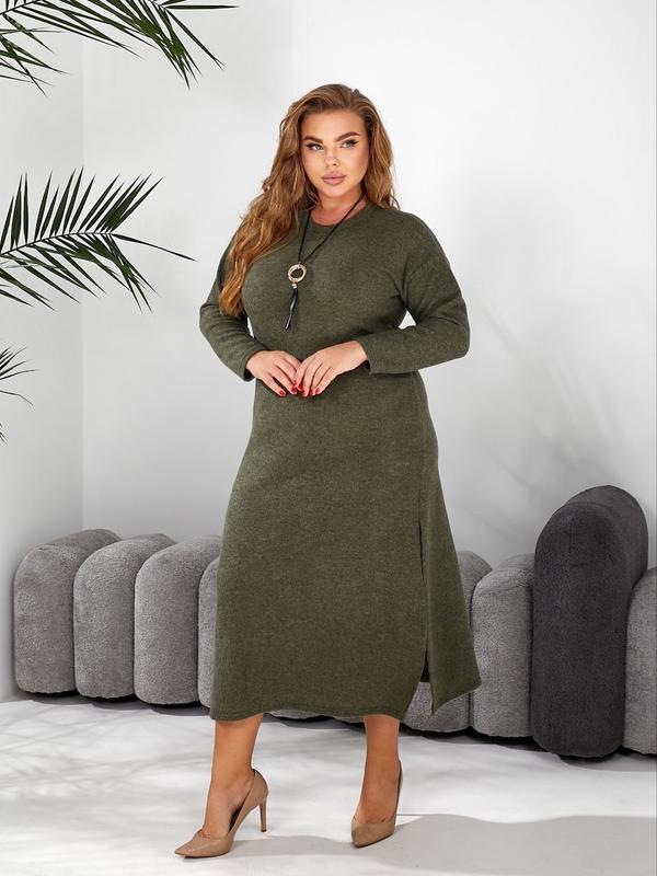 МА 06.09 Сукня Арт. 1/ мр038<731<103 Розміри: 50-52, 54-56, 58-60, 62-64, 66-68 Маркування: xl xxl 3xl 4xl 5хl Тканина: ангора рубчик з начосом Колір: хакі, мокко. Прикраса у подарунок 🎁‼ Сукня з м'якої та ніжної тканини, чудово зігріє та подарує відчуття комфорту, а розріз на нозі створює особливо пікантний образ. Сукня вільна і невимушена, ідеально підійде будь-якій модній жінці! Зроблено з ❤‼ Виміри сукні хl - Ог.106, Ос.122, Дл.126 2хl- Ог.112, Ос.128, Дл.127 3хl- Ог.120, Ос.135, Дл.128 4хl- Ог.126, Ос.140, Дл.130 5хl- Ог.134, Ос.148, Дл.131 Дов.рук.від горловини 73-76см Тканина з гарною розтяжністю .