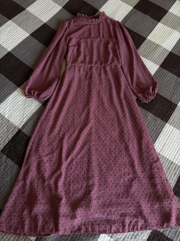 Роскошное платье миди, ткань шифон, французский горошек. Есть подкладка По фигуре садится невероятно 🤩 Пог 42/43 Пот 32/35,5 (резинка) Рукав 56 Плечи 33 Длина 118 Размер хс, небольшая с, ткань не тянется