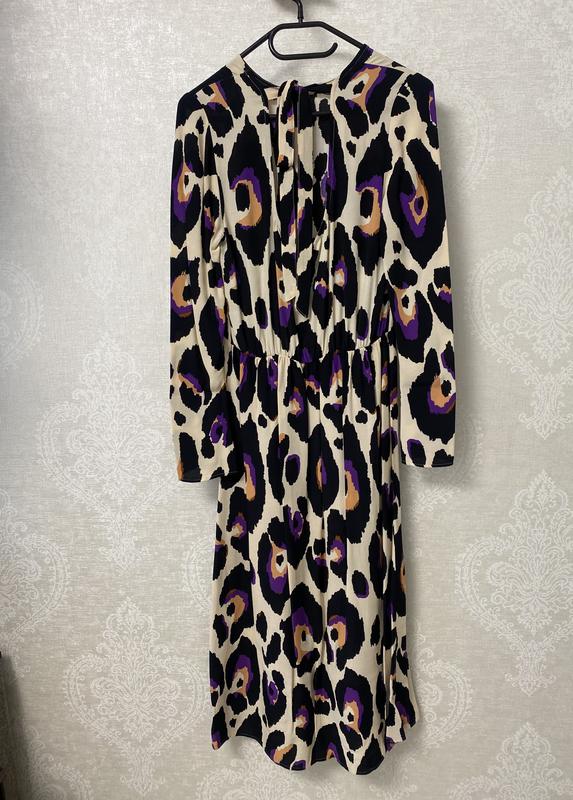 Дуже красива сукня. Модний принт. Стан нова. Можна як на свято, так і на повсякдення. Заміри: довжина- 127 см, плечі- 36 см, по грудях- 45 см, на талії позаду резинка, по бедрах вільно, рукав від плеча- 60 см.