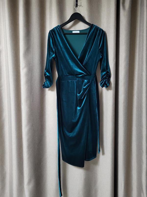 Очень красивое платье в идеальном состоянии. По наборке размер наш 46 но оринтуйтесь по замерам. Замеры : об/грудь : 95, об/талия 80, об/бедра 95, длина 110, рукав 46, плечи 40.Ткань : 92% полиэстер, 8% эластан.